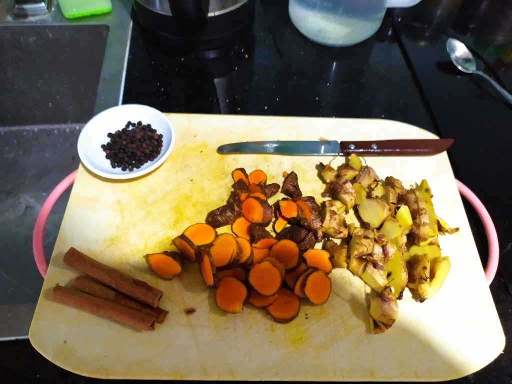 There are lots of ways to take this miracle spice, including capsules or packaged teas. I like making this drink from scratch, it’s a lot more affordable. Also, I believe using fresh ingredients are more potent. My recipe has fresh ginger, another very healthy root.